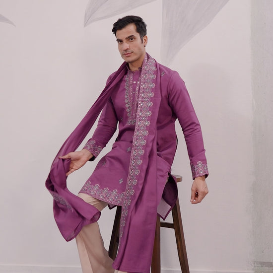 Trendy Pink Color Kurta with Dupatta for Mens Wear
